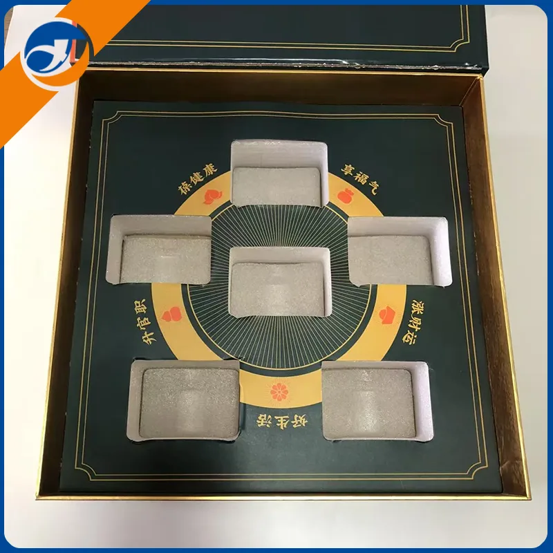 Dovanų dėžutės viduje yra pritaikytas kempinės įdėklas, kuris gali pasiekti amortizacinį ir buferinį efektą uždengus dėžutės vidų. Dėžutės viduje yra šeši skyriai, skyreliai puikiai prigludę prie butelio korpuso.