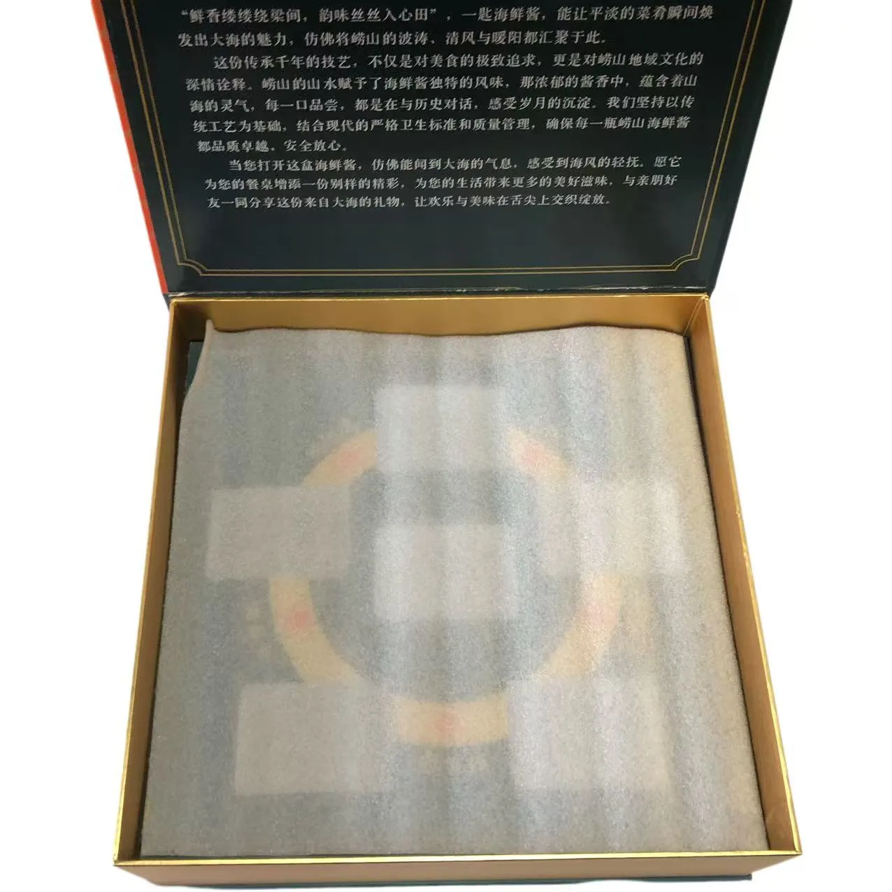 Sulankstoma magnetinė padažo pakavimo dėžutė yra naujo tipo sulankstoma pakavimo talpa, specialiai sukurta padažo produktams. Jo pagrindinis akcentas yra įmontuotas magnetinis uždarymo įtaisas ant dėžutės dangčio, kuris užtikrina sklandų atidarymą ir uždarymą, taip pat sandarų dėžutės dangčio sandarumą magnetine jėga. Šio tipo pakavimo dėžutė turi daugybę funkcijų, įskaitant apsaugą, saugojimą ir dovanų ekraną. Dėl sulankstomos konstrukcijos jį patogu transportuoti ir laikyti. Tuo pačiu jis tinka įvairių padažų buteliukų pakavimo poreikiams, o tai ne tik atitinka kasdienio naudojimo praktiškumą, bet ir sustiprina prekės ženklo atributą bei dovanos vertę per individualų dizainą. Tai aukštos kokybės padažo produktų pasirinkimas, siekiant pagerinti pakuotės klasę ir optimizuoti vartotojo patirtį.