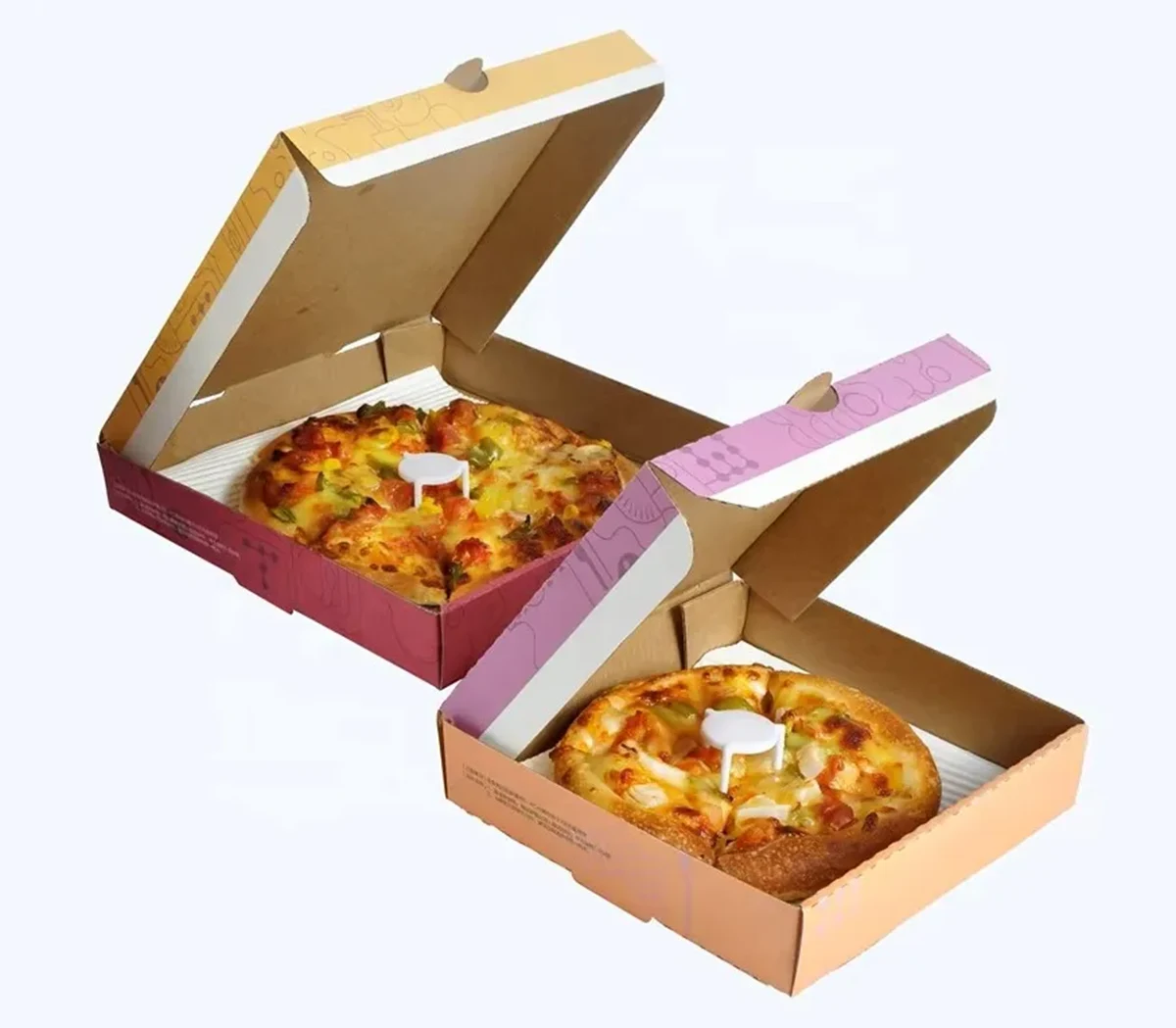 Maisto klasės picos dėžutėsgaminami su aukštos kokybės, maisto produktų ingredientais, užtikrinančiais, kad pica yra šviežia ir saugi, o pritaikymo galimybės yra tinkamos skirtingiems poreikiams.