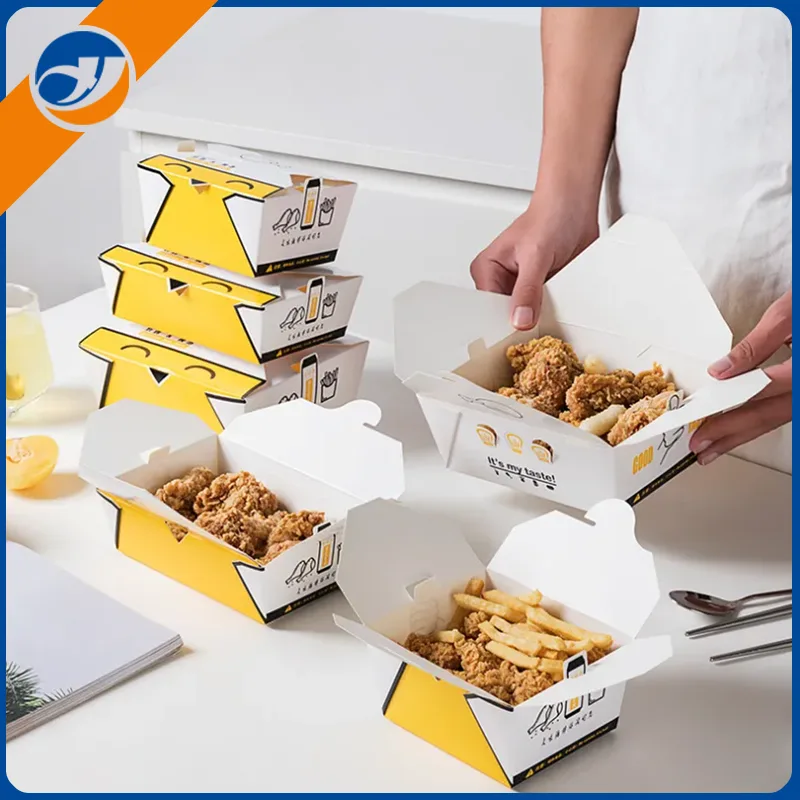Keptos vištienos dėžutė yra keptos vištienos popieriaus pakavimo konteineris, specialiai sukurtas greito maisto pramonei. Keptos vištienos dėžutė pagaminta iš maistinio kartono, atsparaus aukštai temperatūrai ir aliejui, atsparus vandeniui ir nepralaidus vandeniui, tinka karštam ir šaltam, lengvai pakuojamas. Tai praktiška keptos vištienos dėžutė su geru sandarumu ir izoliacija, kuri gali veiksmingai palaikyti keptos vištienos šviežumą ir temperatūrą. Žemeijia gamyklos gaminama kepta vištienos dėžutė palaiko individualų spausdinimą ir tinka išsinešimui, maitinimui ir vakarėlių scenoms.