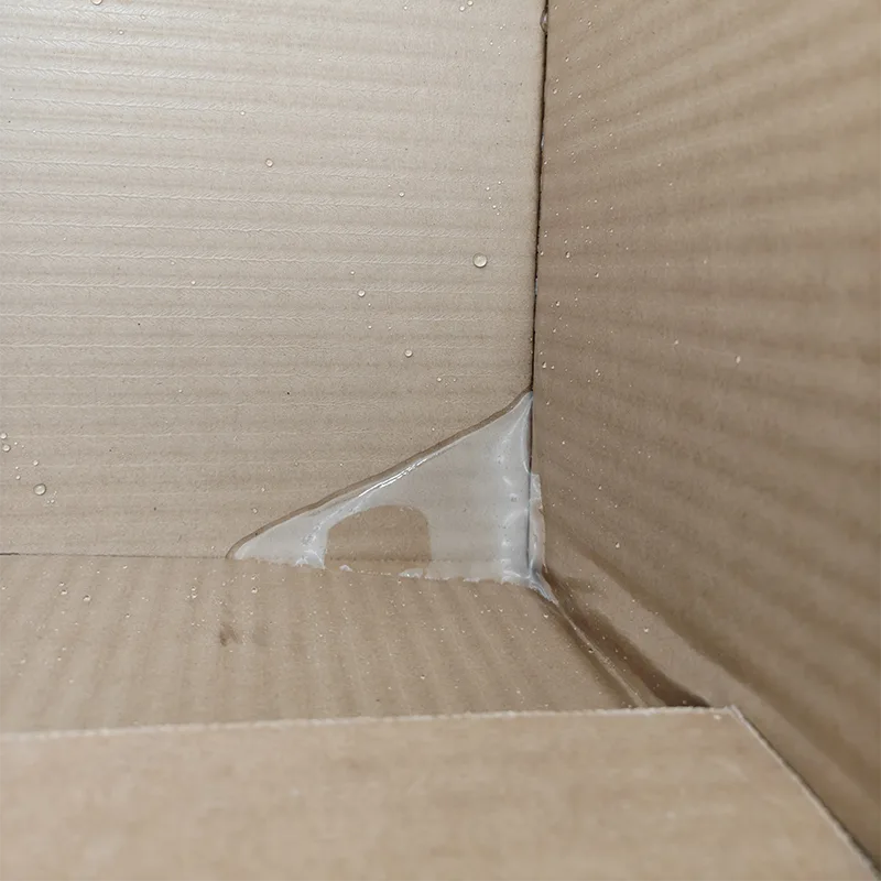 ● Scenarijais, tokiais kaip sandėliavimas virtuvėje, transportavimas lietingomis dienomis ir šviežių produktų apyvarta, kuri gali susidurti su vandeniu, dėžutės išorė yra visiškai padengta maistine skaidria vaško plėvele. Atsitiktinai išsiliejus sojų padažui ar vandeniui, galima nesunkiai nuvalyti šluoste, o vaško plėvelė neatsilups ir neleis drėgmei prasiskverbti į popieriaus sluoksnius, todėl dėžutė suminkštės. Net ir trumpam užliejus nestipriam lietui vandens žymių neliks, o dėžutės kietumas nesikeičia.