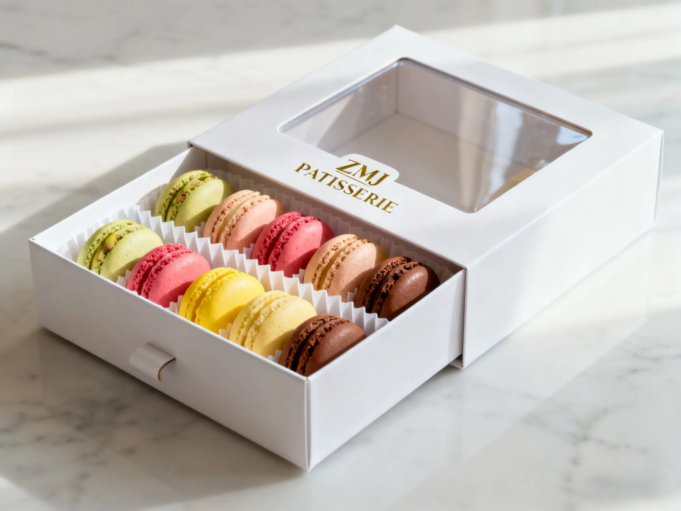 Ieškote pakavimo dėžučių macaronams? „ZMJ Packaging“ siūlo pagal užsakymą atspausdintas „macaron“ dovanų dėžutes. Kiekvienoje dėžutėje yra įmontuoti amortizuojantys įdėklai ir aiškus ekrano langas. Visi gaminiai pagaminti iš medžiagų, atitinkančių maisto saugos standartus. Mes siūlome puikias didmenines kainas ir jums nereikia užsisakyti minimalaus prekių skaičiaus. Pasirinkite mūsų pakavimo dėžutes, kurios tausoja aplinką, kad jūsų skanūs kepiniai išliktų saugūs ir sveiki.